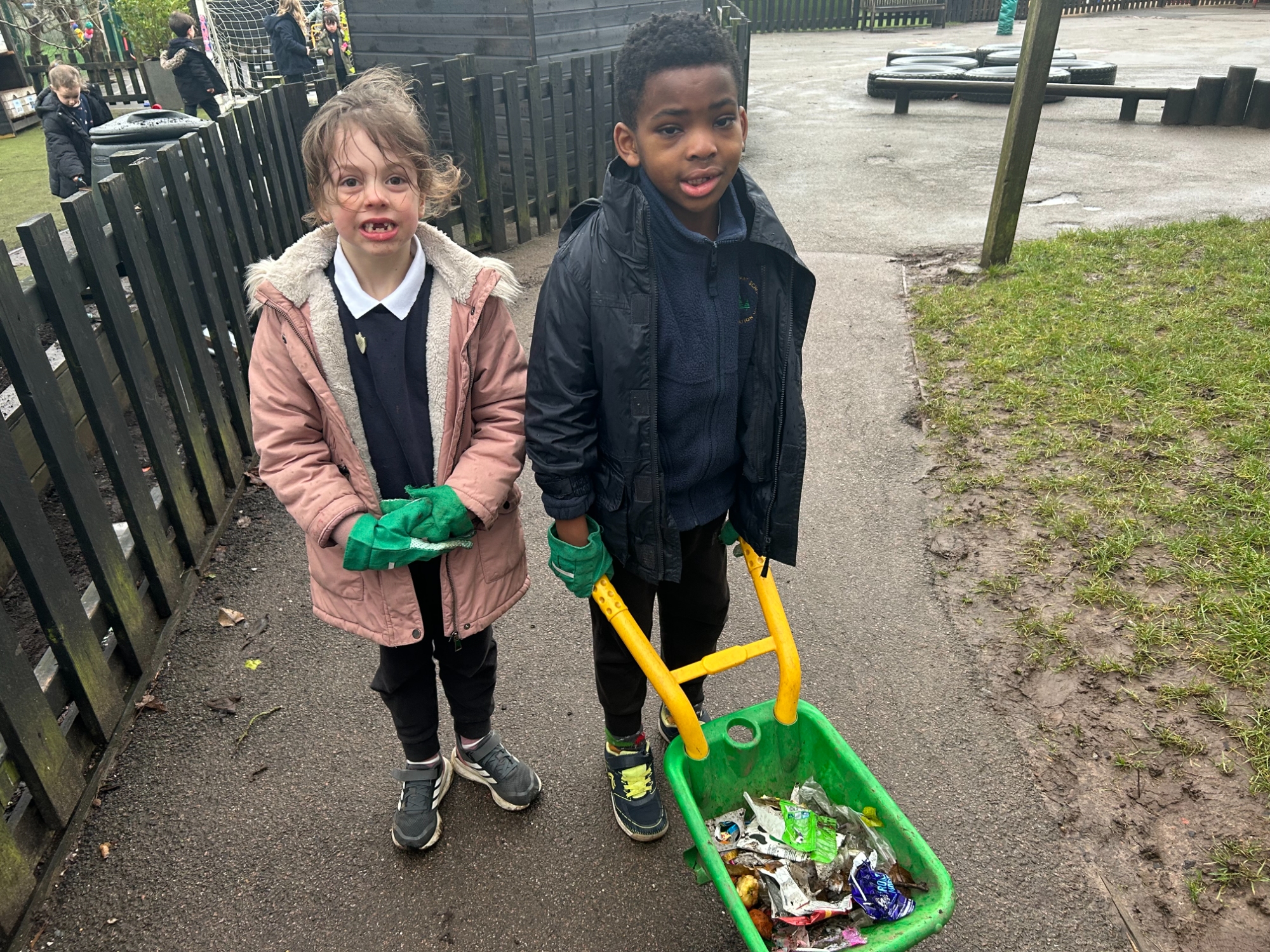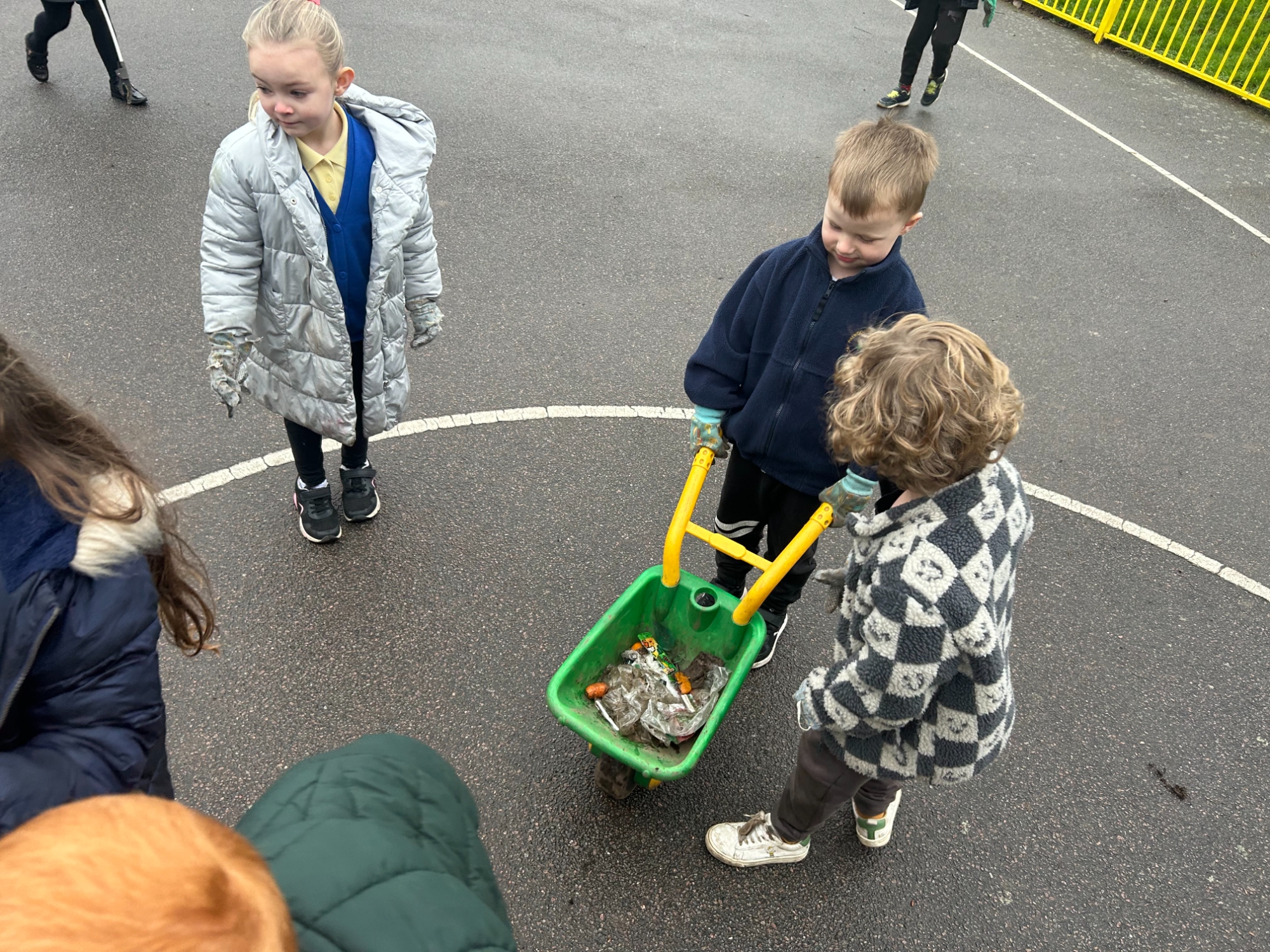 During our meeting, we thought of ways to make our school a better place. We passed around the listening stone so that everyone had the opportunity to speak whilst everyone else listened. Neve said, “We need a clean environment!” Then another child added, "We shouldn’t litter because it can harm the animals." This then led us to our team inspecting our outdoor school environment, which had lots of rubbish on the floor, mostly fruit and milk from playtimes. We then worked as a team to collect all the rubbish and dispose of it correctly.