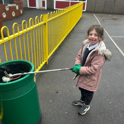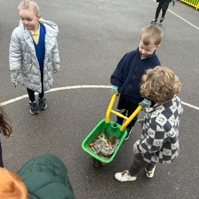 During our meeting, we thought of ways to make our school a better place. We passed around the listening stone so that everyone had the opportunity to speak whilst everyone else listened. Neve said, “We need a clean environment!” Then another child added, "We shouldn’t litter because it can harm the animals." This then led us to our team inspecting our outdoor school environment, which had lots of rubbish on the floor, mostly fruit and milk from playtimes. We then worked as a team to collect all the rubbish and dispose of it correctly.