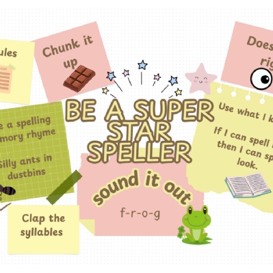 Our aim is to develop confident, independent writers who take pride in their spelling. To support this, a range of resources is always available in classrooms, and children are encouraged to become ‘Superstar Spellers’ through regular practice and celebration of their progress.